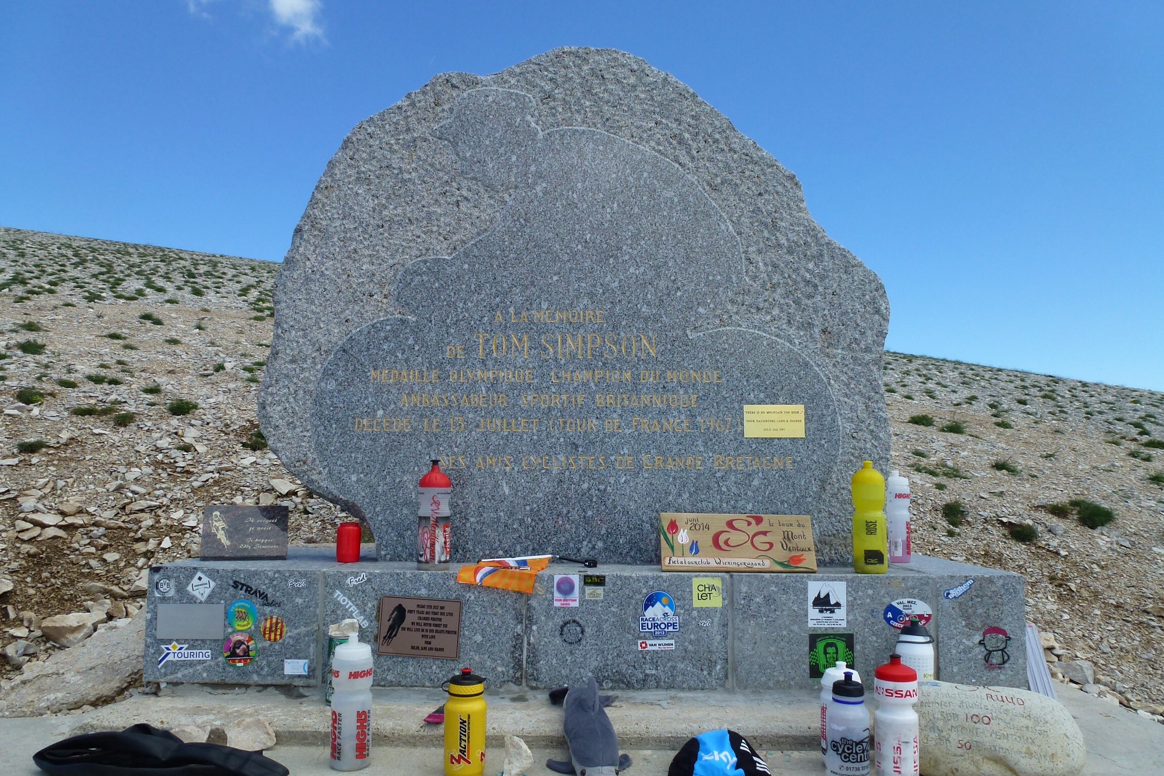 The Tom Simpson memorial, we popped back down to pay our respects. He may, I n modern eyes be viewed as a cheat, but remember that everyone else was doing it as well. No excuse I know. He does deserve to be remembered as a great British sportsman. His last words as a lay dying on the mountain were “put me back on my bike!”