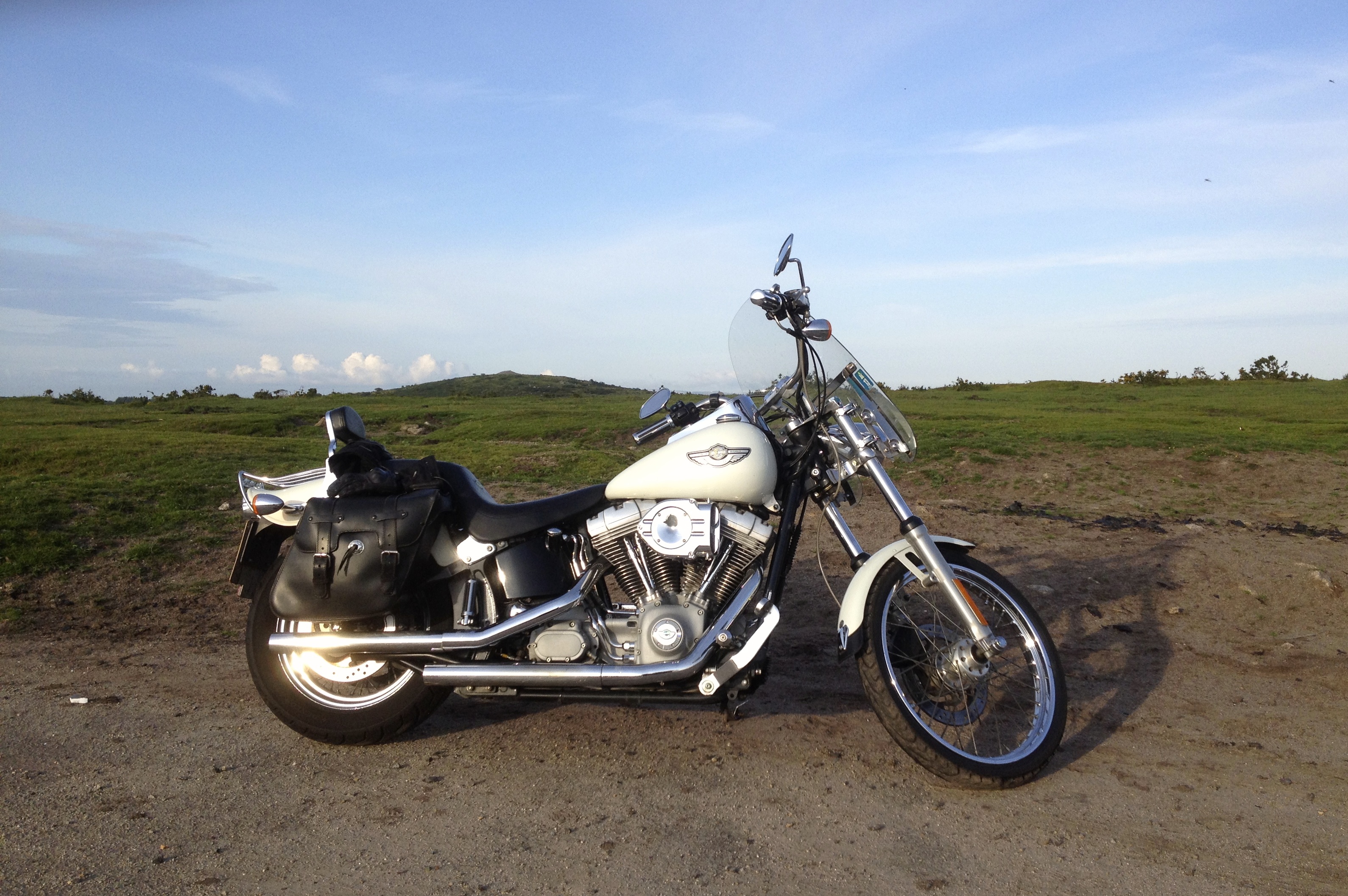 Harley and I hit the road very early on Saturday morning and headed West along the A30, the main arterial highway through Cornwall. Every lay-by across the fifteen miles of Bodmin Moor was jammed up with caravans and motorhomes and even at six thirty in the morning the traffic was both heavy and driving along like total morons! The outside lane was busier than lane one as the overloaded masses lumbered towards the seaside disregarding all laws of the road….you all know my views about most British car drivers by now, but this was my worst nightmares all rolled out as one and right on my doorstep! Oh the joy of another six weeks like this, until they all go home for the winter! That said the weather was superb and it was great to be out, mind you I have ridden Harley just about everyday since returning from France…I just can’t get enough of that bike!